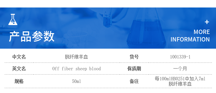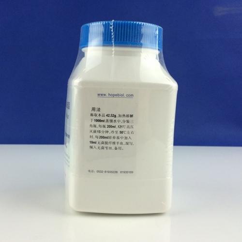 每50ml脱纤维羊血添加于1000ml哥伦比亚血琼脂基础中